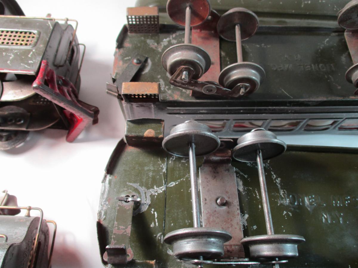 All three 35 pullmans shown have different methods of making the steps. The first perforated steps are individually made and then soldiered to the car floor in the corners. The first type of 3-hole step has two steps as one unit soldiered on to the bottom of the car. You can see a line going across the bottom of the car between the inward edges of the doors. The 18/19/190 and 180 series cars are made this same way. The whole step subassembly becomes the floor of the vestibule.
