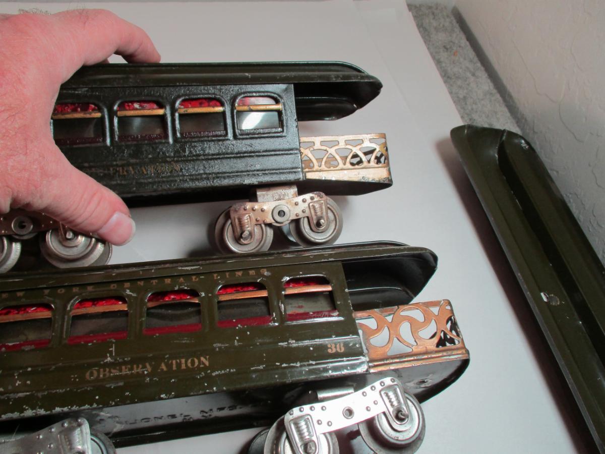 Here's a few lots of neat standard gauge. Some is repainted, some is original. Someone in the Northeast should go look and bid on it. Of note is the 112 gondola with Pennsylvania on it - I think I have one, but can't find it. A 400E and tender, Pea green 38 that might be original, an olive 42 with strap headlight that is probably repainted and more.