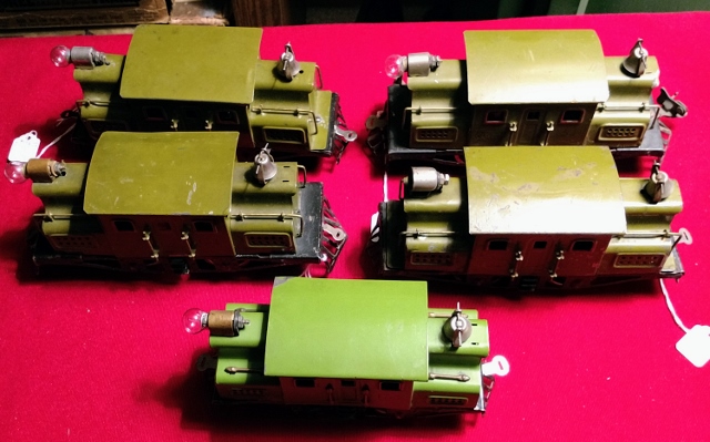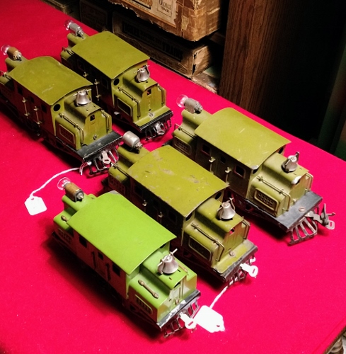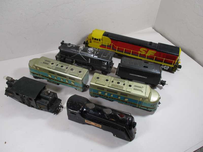 The yellow loco is a MTH and the Marx locos are common. Maybe $150 back for them