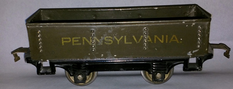 Here's the gondola which has no Lionel markings whatsoever and could be from any period between 1915 and 24.