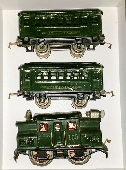 Lionel's 1st "short" loco Outfit 160 with dark green 150 and matching 600 Pullmans.