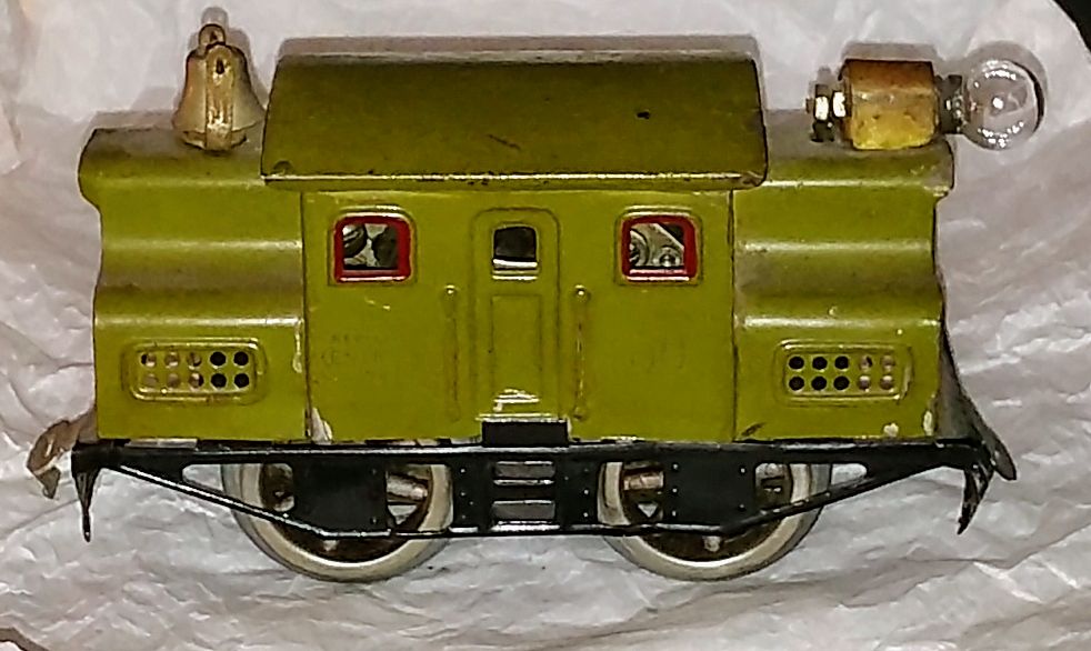 Thanks fellows. I picked it up today. I actually don't mind the color of the engine, someone didn't do to bad of job painting it. Cars are a bit chipped up, but it is 90 years old. I did notice the roof lights are missing the screw that holds them down. I did get a tranformer with the set, would this work with this train? tried to load a picture, but says its too large, oh well Loco
