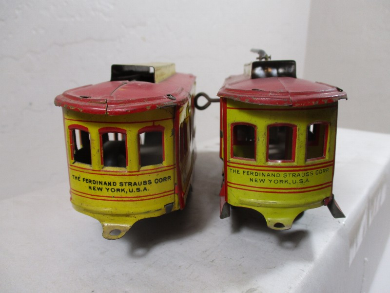 I bought a Ferdinand Strauss Twin Trolleys set at a show on Sunday. The seller had some wonderful English 1 gauge live steam from the 1920s that I find very tempting. Then he put out this much cheaper set which I immediately bought.