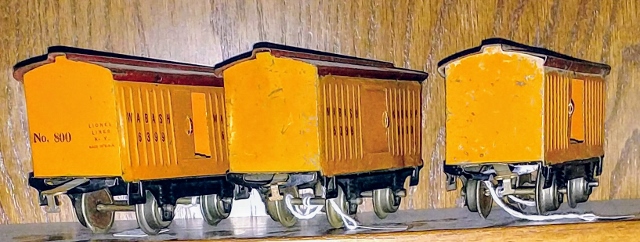 You can't see them well in that picture, but they are the early cars with red primer, perforated steps and the platform like the 36 in the picture above. They are in poor shape, but for only $250 for the set I couldn't pass them up.