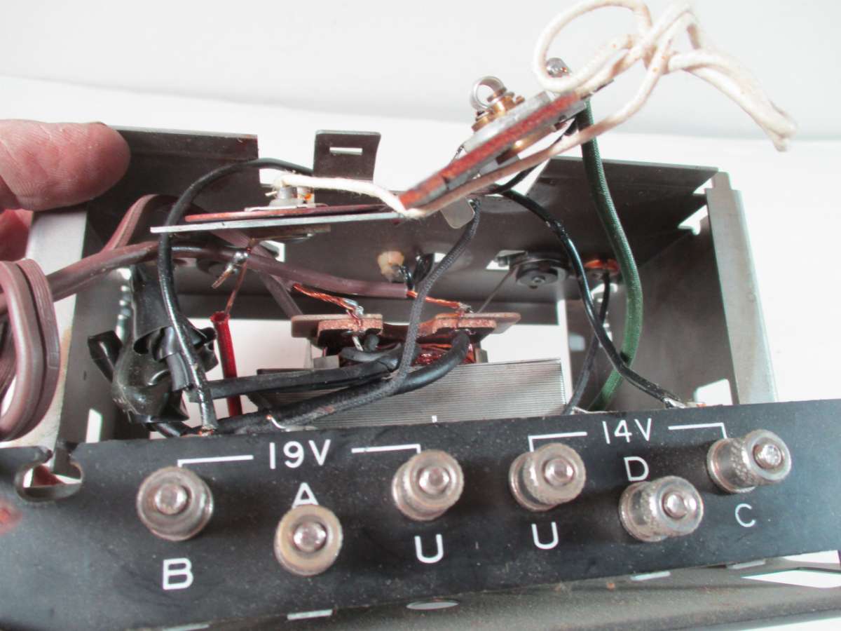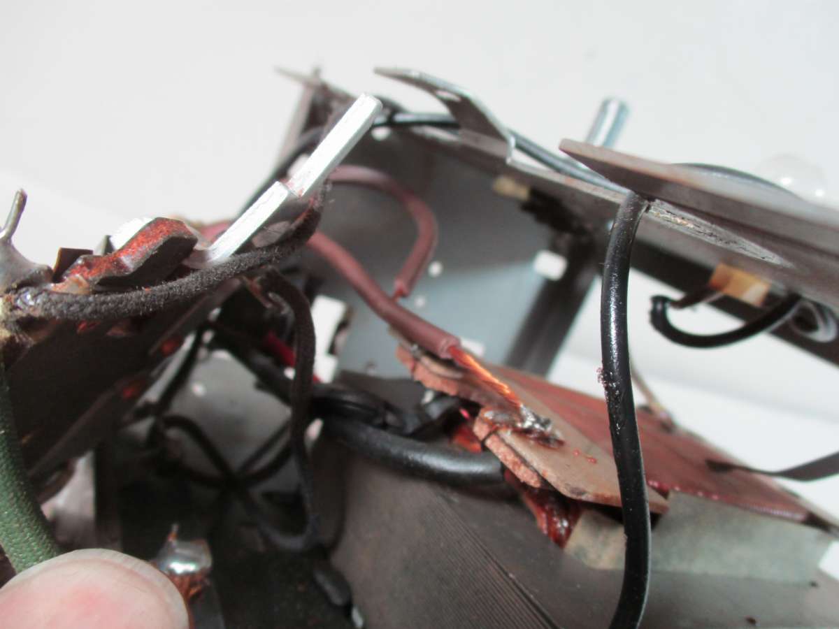 Then I just opened this one up last night. This guy had a soldiering iron, but left the original cord end there. The brown one is the new one, the original black one has some tape wrapped around it. This is a postwar SW transformer.