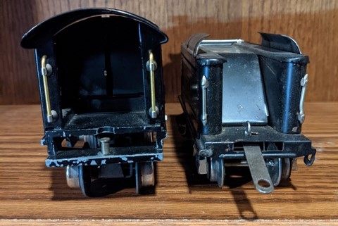 In 1935 the 1934 picture was shown in the catalog as a 261E with brass trim for separate sale with a 261T. It was also shown in a set with nickel trim and matching 650 series freight cars. They downgraded the loco from the top of the line cars it pulled in 1934 to smaller cheaper cars.