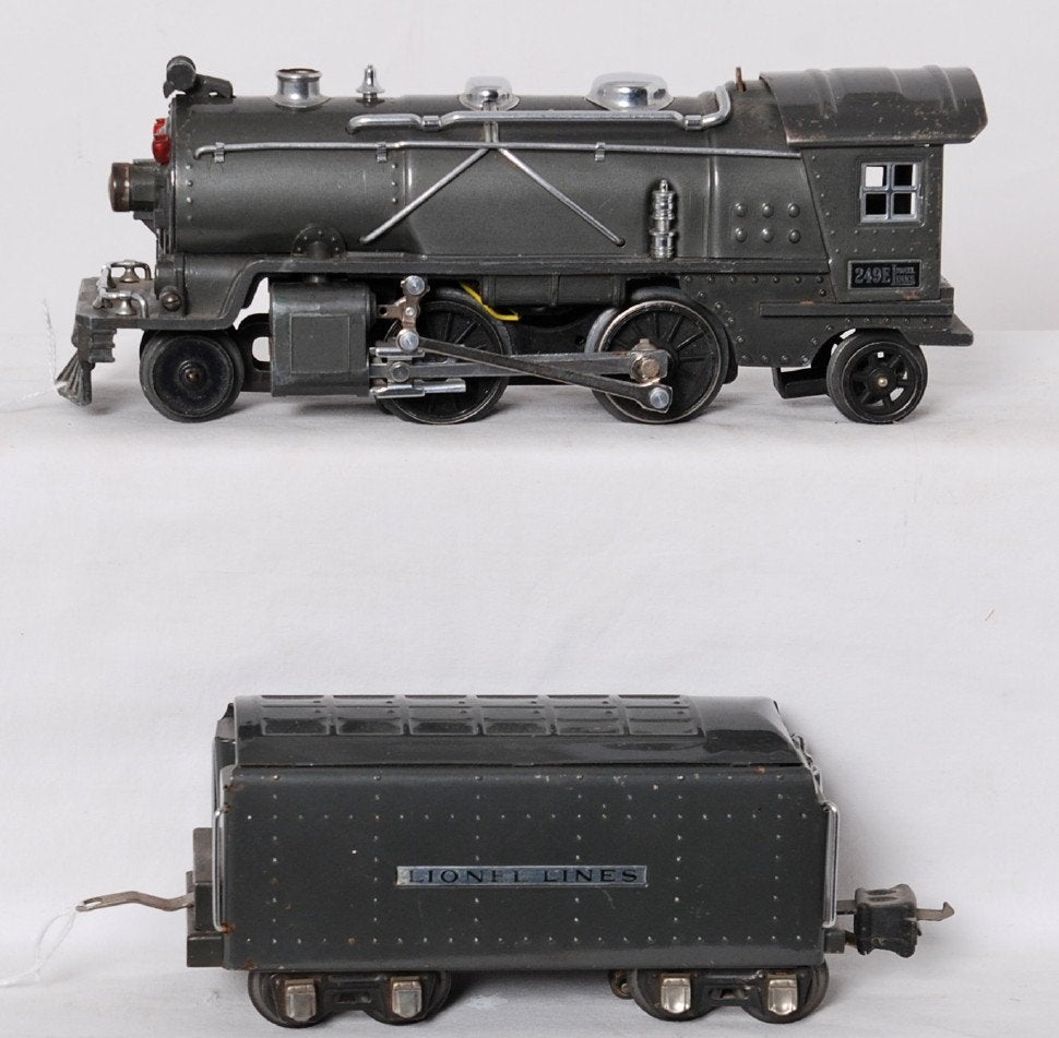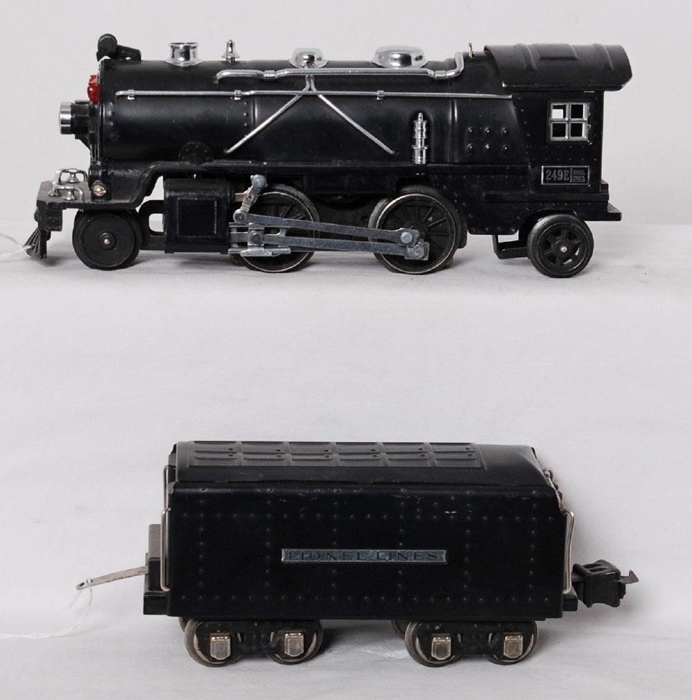 The 249E was not cataloged after 1937, but came in uncataloged sets. Either with a 265T tender having a latch coupler or with a 2225W as shown above.