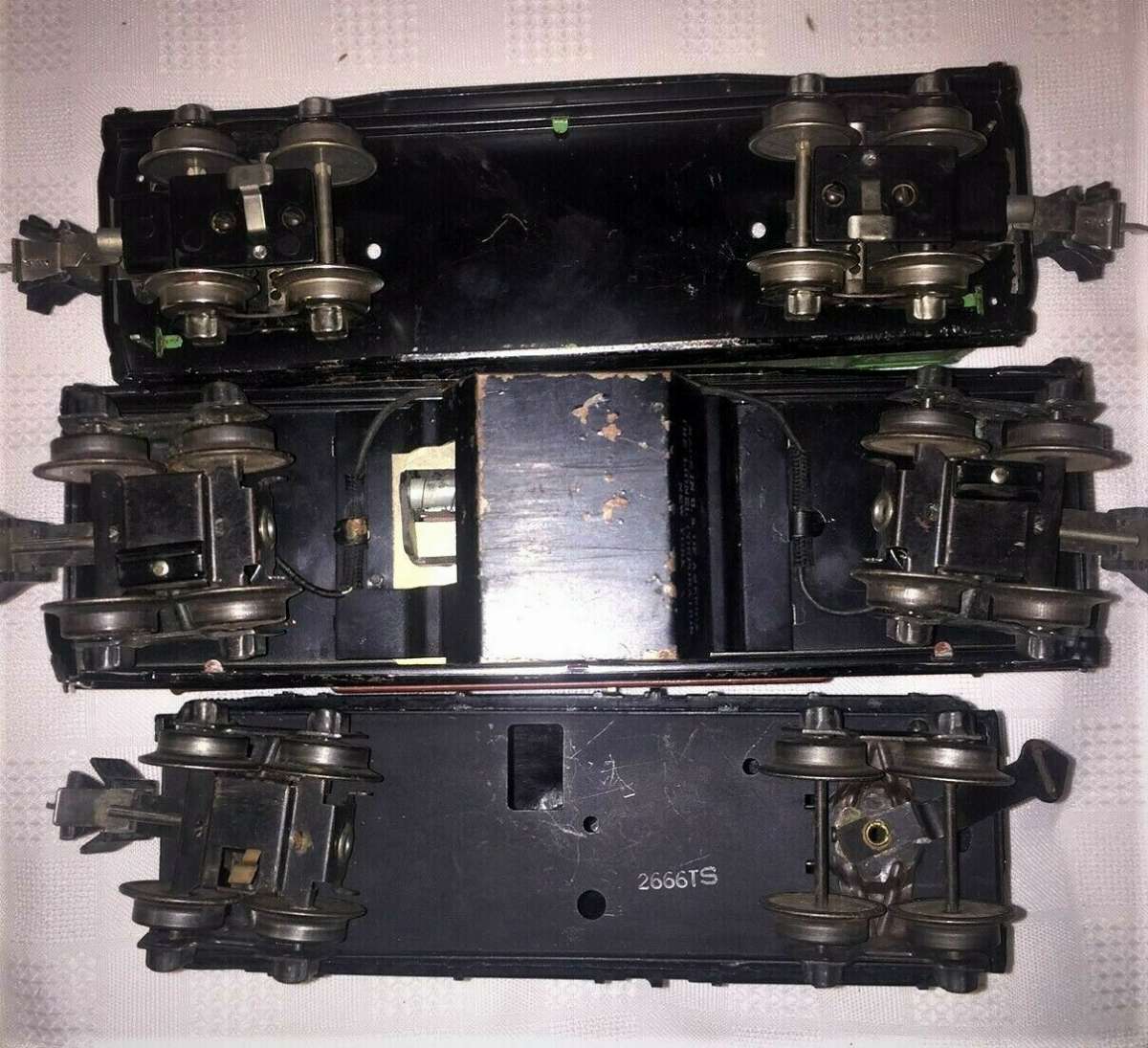 Notice this set has a 0-2689W tender with the box stamped TS. The 2666TS tenders are plastic and do not have whistles.