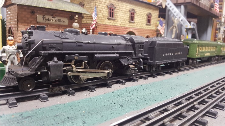 Here is one that I purchased as a set many years ago, but no boxes. Same era, 1940-41, uncataloged. It has a 229 with stamped number in plate depression, 2666TS plastic tender with high-step coupler, no whistle, 2613, 2613, 2614 state green cars.