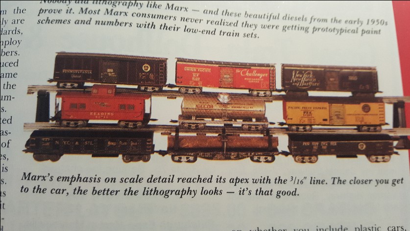 When I was writing for Classic Toy Trains magazine in the late 1980's and early 90's I did an article called "Marx Trains True to Scale" I had noticed that Marx Litho trains copied distinguishing characteristics of the prototype. Good examples of this are the Southern Pacific #6000 diesels. Also many other examples.