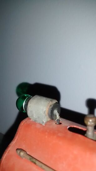 The strap headlights without threads and nuts are two insulators with a squished eyelet holding them together. One insulator disk on the inside of socket and one on the outside with the tabs from the housing between the outside disk and the socket. The wire is attached to the eyelet.