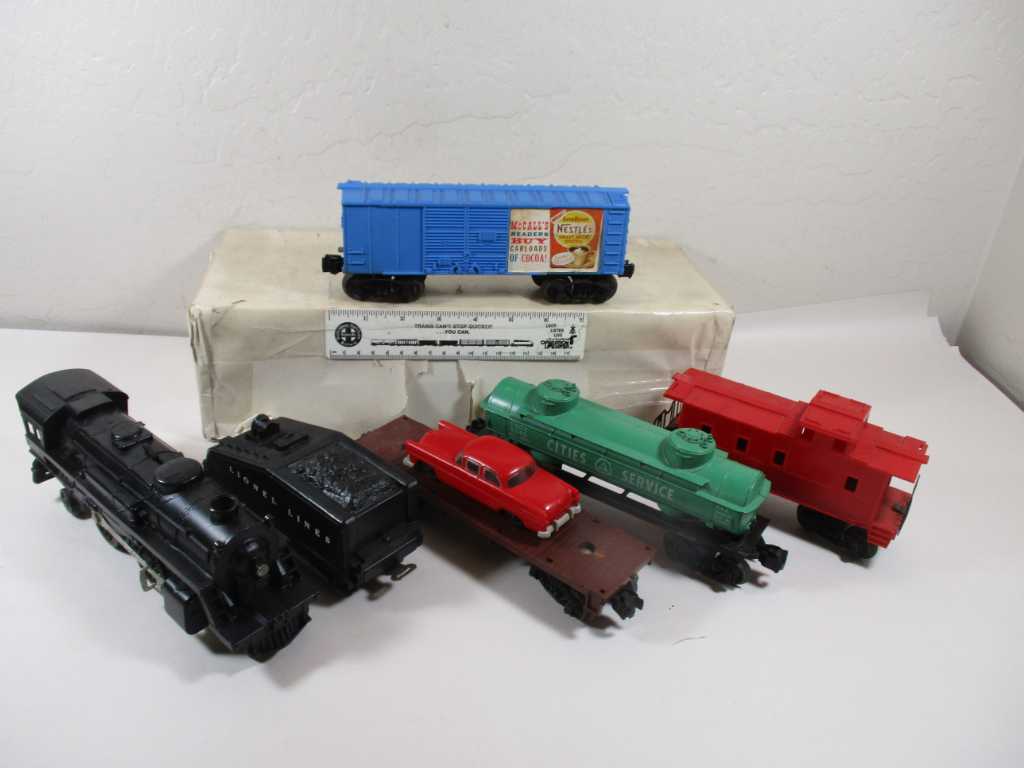 I just bought that this morning. A woman called on Friday afternoon and told me she had trains - Cities Service tank car worth $600, a pork and beans car, a pair of 242 locos, some missile firing cars and some little autos on flat cars.