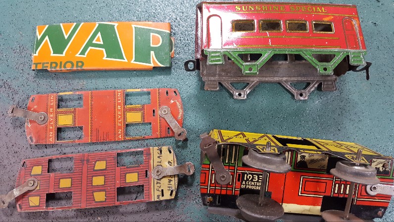 I have always been fascinated with the recycled material that can be found inside cars. I did an article for CTT magazine in the 1990's called "Deep Dark Secrets of Louis Marx" about the litho inside 556 cabooses, which turned out to be surplus back-drop litho from a pre-WWII Marx shooting-gallery toy. I will go into that another time, another place.