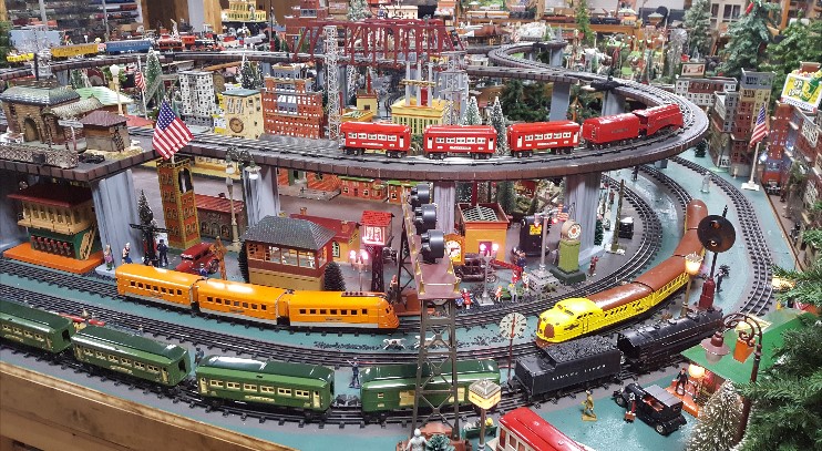 The ones that I use are Mercury Glass, battery illuminated, some are globes, some columns. They catch some interesting reflections when the trains pass them, just something different.