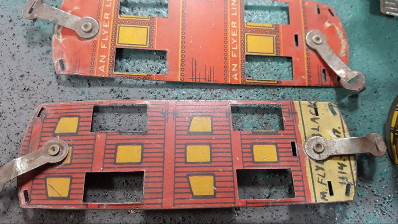 I have always been fascinated with the recycled material that can be found inside cars. I did an article for CTT magazine in the 1990's called "Deep Dark Secrets of Louis Marx" about the litho inside 556 cabooses, which turned out to be surplus back-drop litho from a pre-WWII Marx shooting-gallery toy. I will go into that another time, another place.