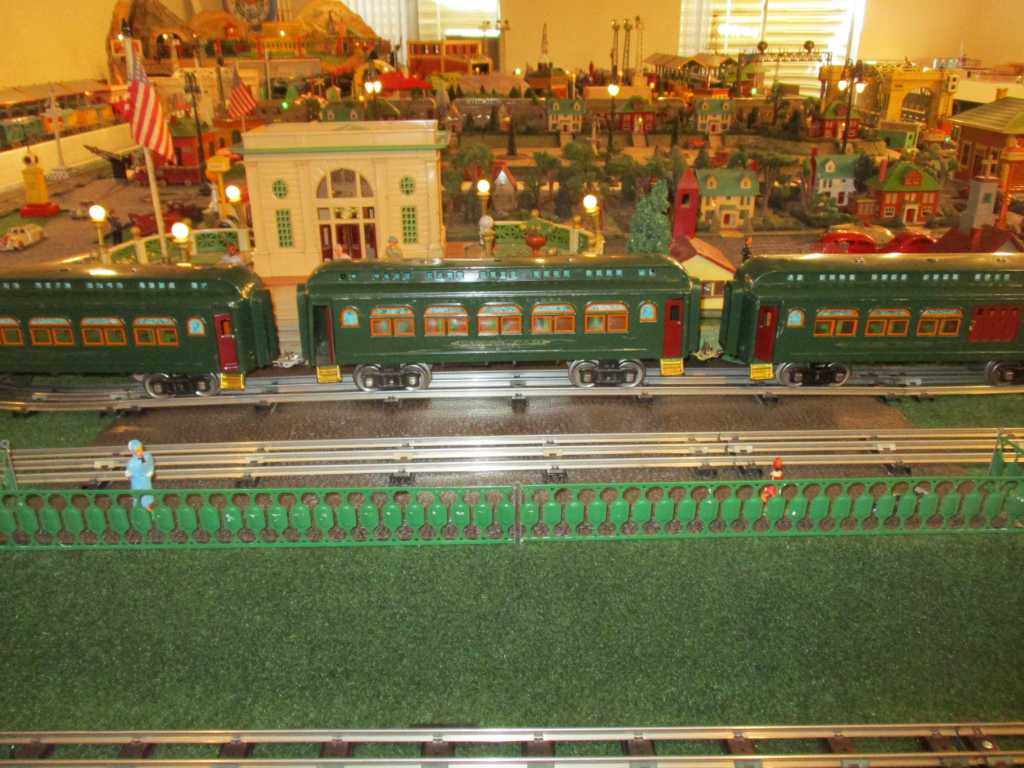 I ran all the trains on the layout today for visitors except the coal train and the Blue Comet. The 392E and Flyer freight sets ran without problems. The  blue and alum 309 cars ran well. The State set derailed on one switch three times. The  402 and 380 sets each derailed once for no reason. The 9 knocked a bunch of items over that I'd put too close to the track, but otherwise ran well.
