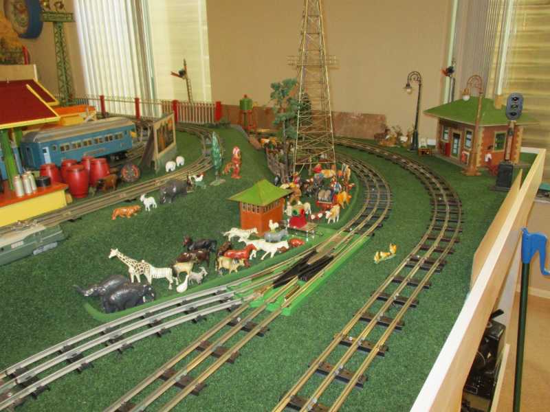 Here's a bunch of layout pictures. The standard gauge layout is running well. I have toi add another Z transformer for the lights, and repair a few of teh switches, but the disruptive work is done.