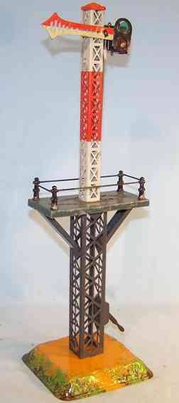 Looks like a German semaphore missing the arms. You can see the levers at the base and the hole near the top for the semaphore blades. Wires would connect the blades to the levers.