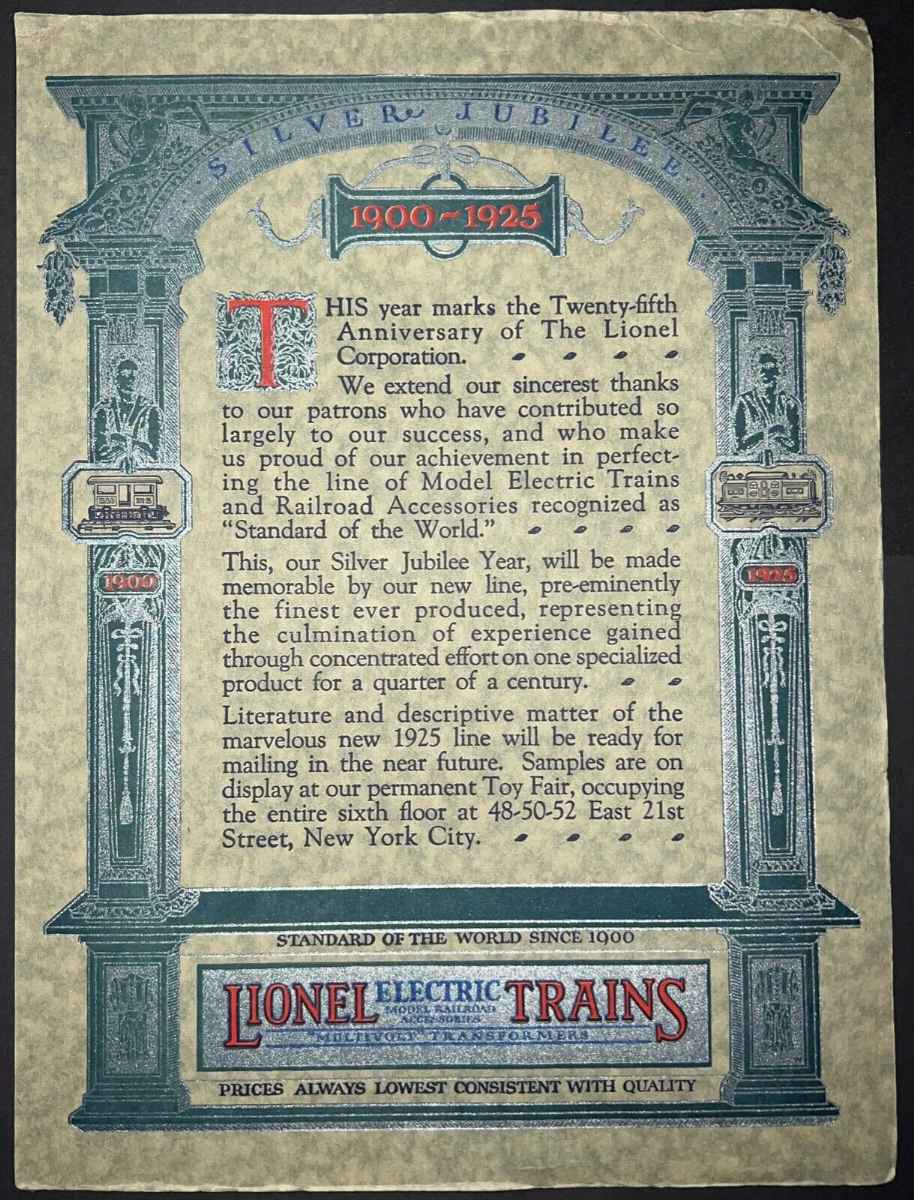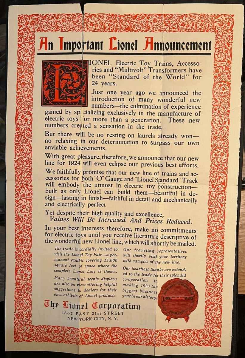 Here's toy fair invitations sent to dealers by Lionel in 1924 and 1925. There was a framed 1925 invitation a few weeks ago on ebay that went for $3300.