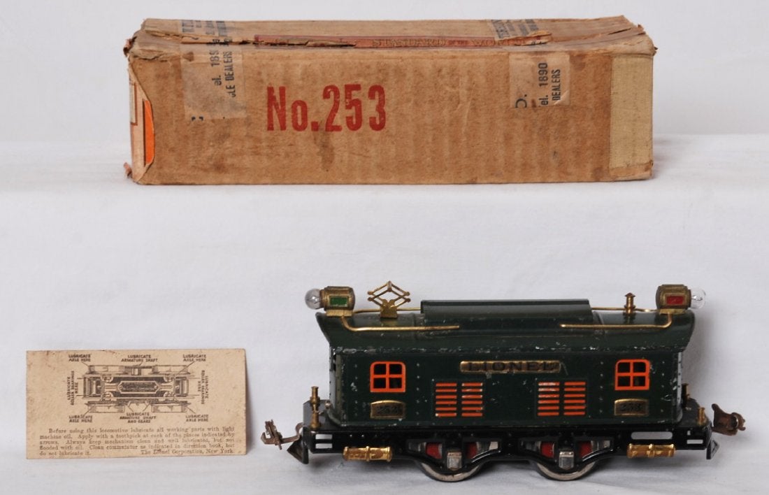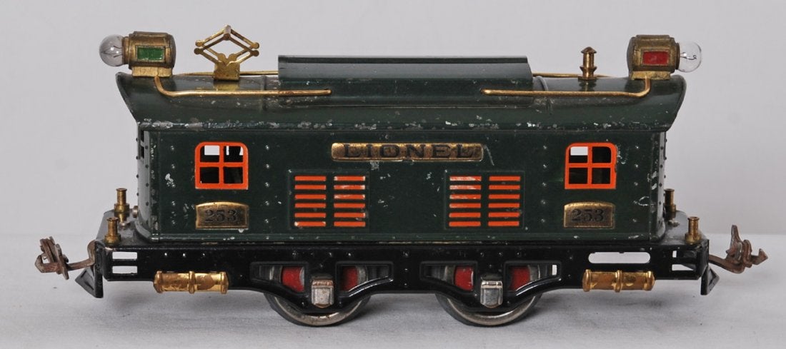 I think the story on these is Lionel needed to get rid of the last of the 610 cars so they painted 253 locos to go with them. At that time the plates were painted orange for the peacock locos were used in the dark green ones. As far as I know the regular dark green 253 locos always had strap headlights so this cannot be faked by switching plates.