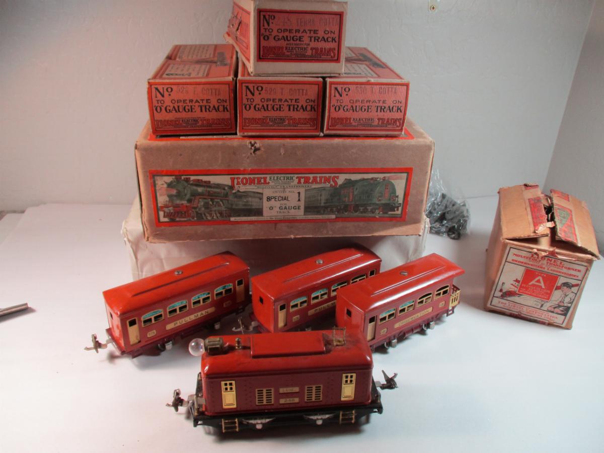 The 234 set from 1930 came with the three cars shown above and a 258 Steam loco and tender. I bet this set did come with all this straight track because a set with few sections of track would have fit into set box 294 which had a 252 and tyhese three cars with 4 sections of straight track.