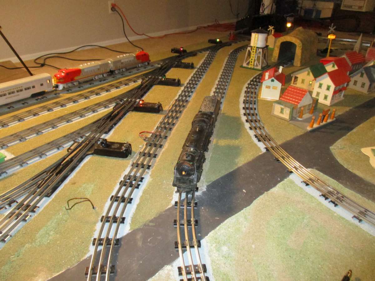 Originally the south side was to have trains running alternately with relays so from the north side you'd see trains going back and forth on the same track. After cleaning the switches I decided to run more than two was unrealistic. The old switches just don't work.
