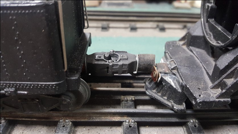 I had to do some creative bending of the shank on the Irvington coupler to raise it about 1/4" to mate with the tender coupler. I may re-do this step at a different location. I bent at the existing bend up against the coupler head, the plunger fell out and the coupler no longer stays closed. I could make a new back-stop and solder-attach it, or bend farther back so the back-stop is not compromised. I may be able to make this a working coupler, but would need to install a centering spring........maybe getting too complicated. Anyway, the pictures show my progress and all should be sound information up to the point of bending the coupler shank.
