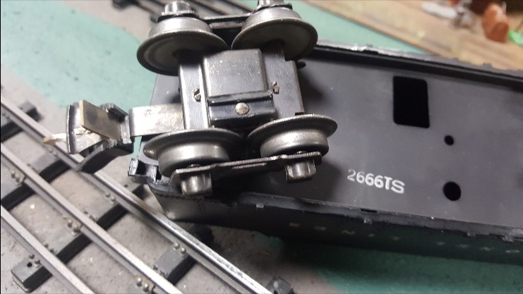 Notice this set has a 0-2689W tender with the box stamped TS. The 2666TS tenders are plastic and do not have whistles.