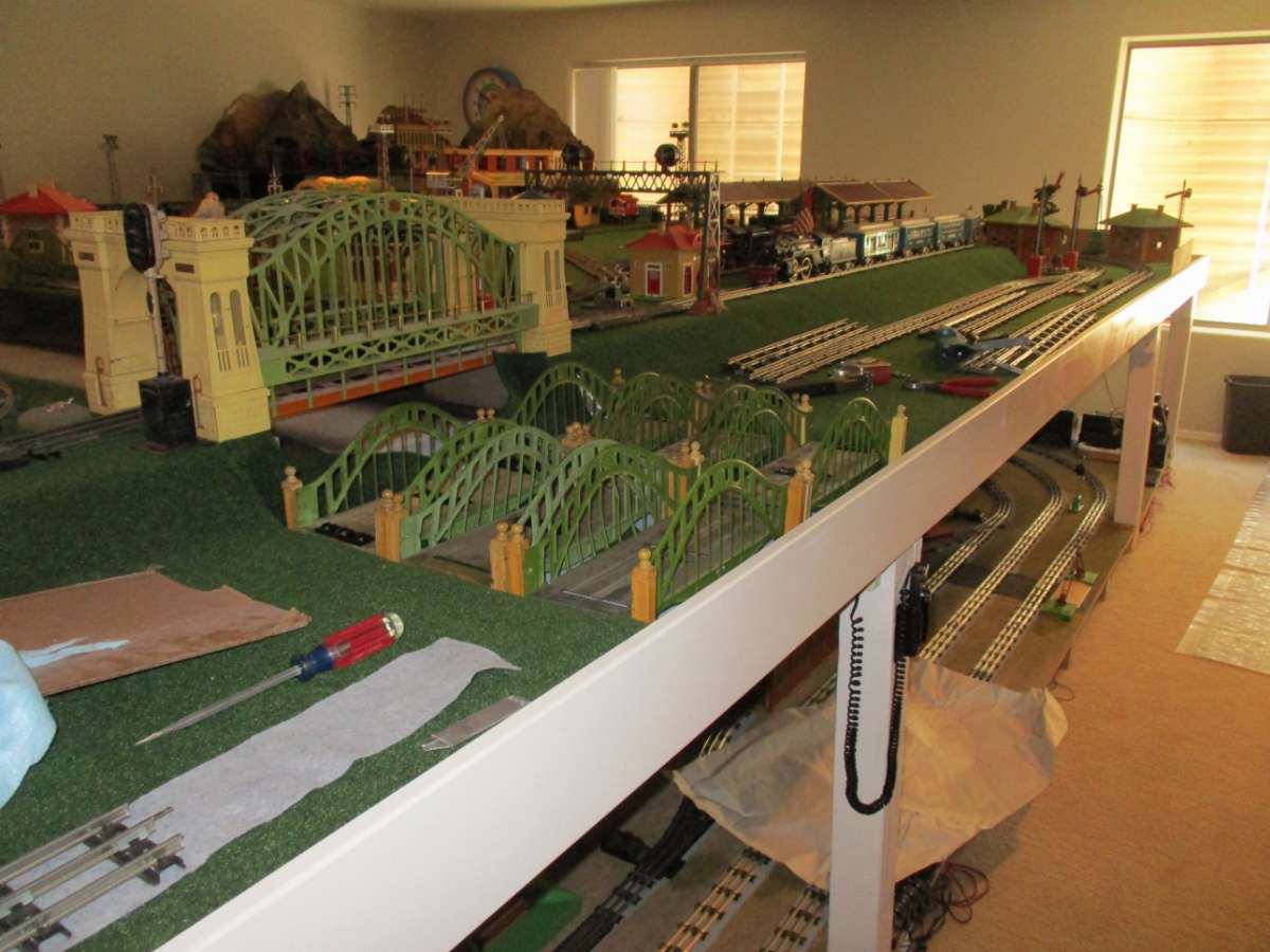 I also unboxed a bunch of items and put them out and cleaned the shelves under the layout in the walk in aisle so I can put the standard gauge operating trains out.