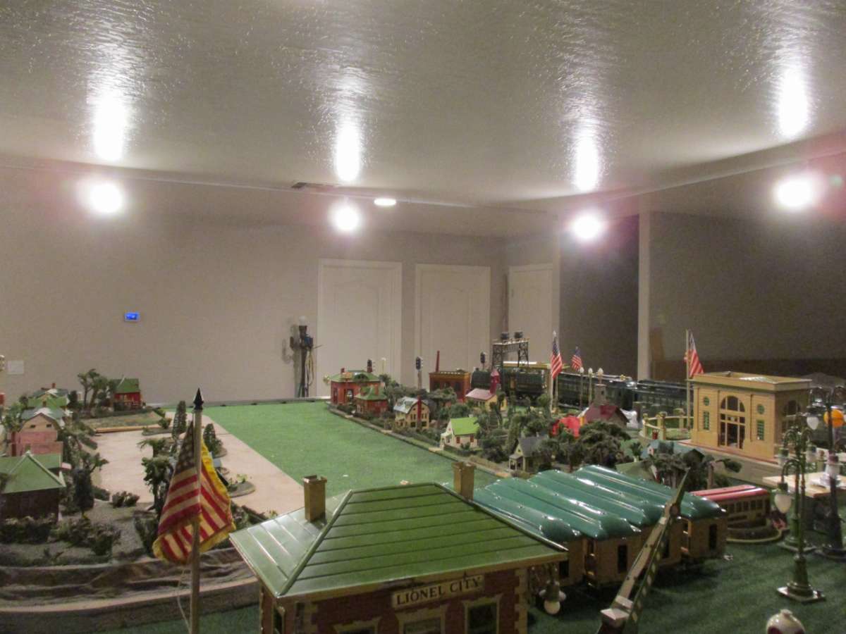 Impressive to see 5 Standard Gauge trains running, I bet it was noisy! Nice with all the different levels. In one shot, it looks like the layout continues into another room, but is that mirrors?