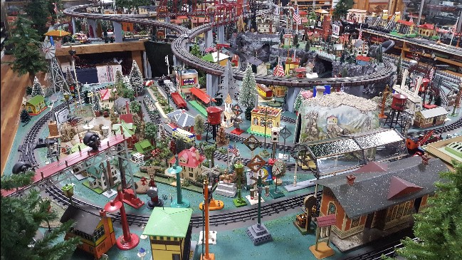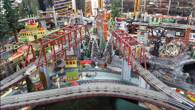 Most of the individual boxes you see are empty, the trains are on the shelves. About half of the set boxes have trains in them, others are on the shelves. I never seem to have enough shelf space.