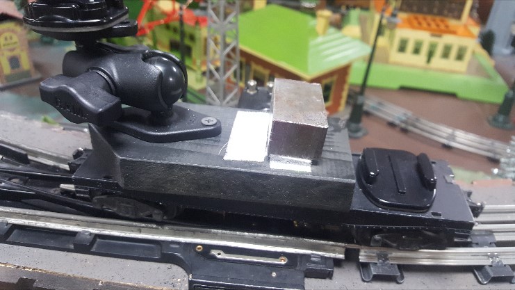 The camera car was an easy build. I removed the operating platform from a 3461 diecast log dump car, stabilized the trucks with washers, added a wood platform to the top. The camera mount, for my GoPro, was made by Ram, found it on Amazon. It has universal type adjustment for any angle. I added some weight and painted it black. I think I have a photo that I can post. I have to watch clearances on the right of way, as it tends to hit station roofs, overhead walkways etc.