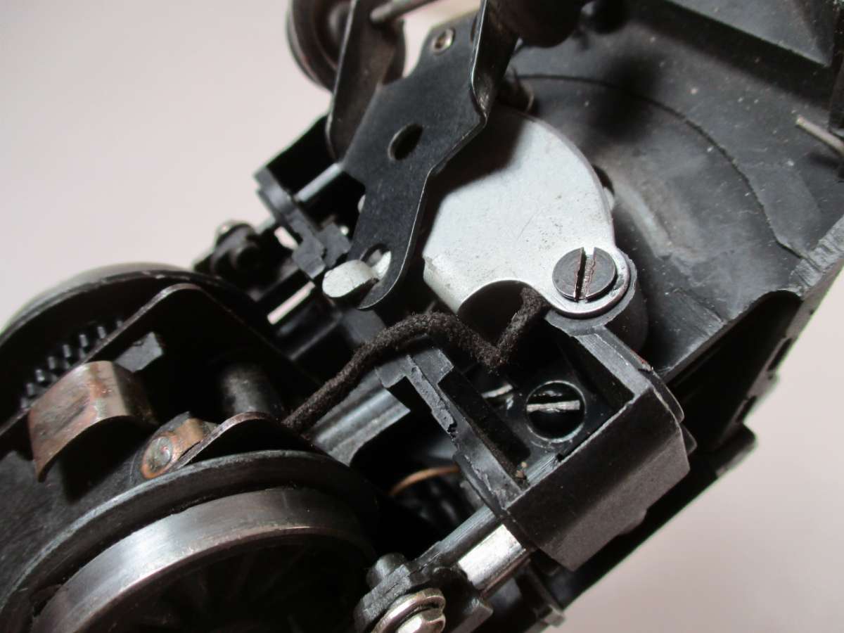 This is the normal state for used trains I buy from the public. I can see that someone was inside this loco because the wires to the brushes are pinched between the body and the motor with a peice of cardboard stuck in to prevent shorts.