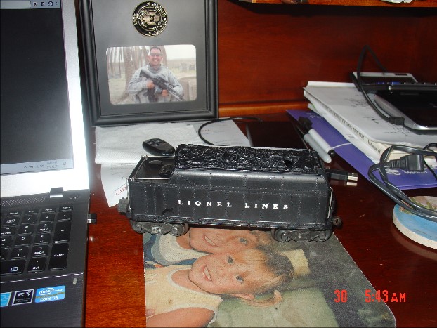 I was looking at Lionel 2026 locomotives to make another double header. I found one that looks good. Has a beautiful tender with hand rails everywhere. Tender looks new. Seller says it ran for a few seconds then quit. Light works, smoke works, has all side rods. Only thing that I could see was the Lionel 027 tag on the skid plate was missing.