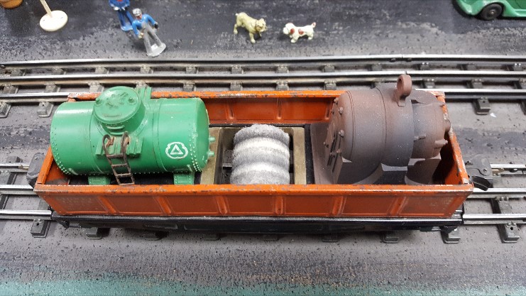 I modified a beater 2812 gondola, as shown so I have a "prewar" track cleaning car. A Marx generator and plastic tank are added just for looks. It works fairly well.