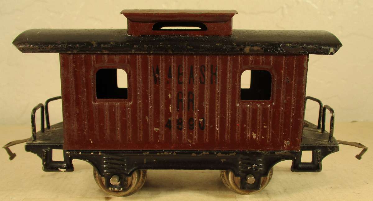 This one does have the hole in the end and with the wire handrails dates this to 1924. The earlier ones doesn't have the hole in the end. Collecting the 152 is harder than filling an inside straight. There are sooo many variations. I think I have 12 different. Mfg, corp, axle bushings, no axle bushings rivet coupler, slot coupler, 3 hole hoods, strap hoods, transition hoods, triangle brush plate, dog leg brush plate with caps, dog leg brush plate without caps, square brush plate, rivet brushes, crimp brushes, Nickel trim, brass trim, 154's stamped 152, 150's stamped 152, and on and on. And this doesn't even include the colors! Dark Green, Light Olive Green, Dark Olive Green,Light Grey, Dark Grey, Peacock, WHEW! I guess it all depends on how anal you are as to what you want in your collection.