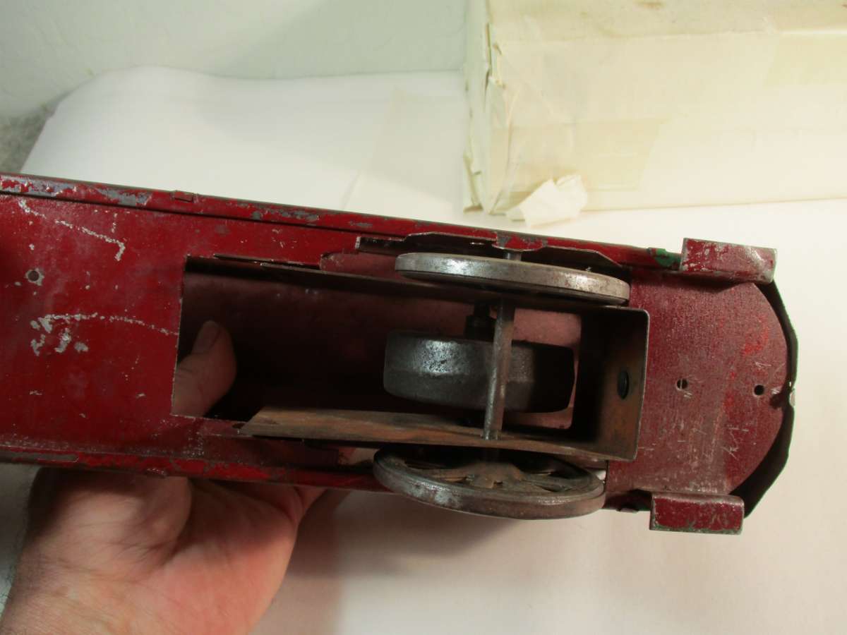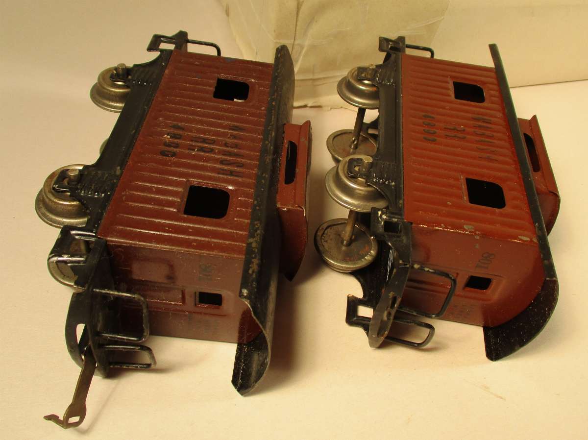 This one does have the hole in the end and with the wire handrails dates this to 1924. The earlier ones doesn't have the hole in the end. Collecting the 152 is harder than filling an inside straight. There are sooo many variations. I think I have 12 different. Mfg, corp, axle bushings, no axle bushings rivet coupler, slot coupler, 3 hole hoods, strap hoods, transition hoods, triangle brush plate, dog leg brush plate with caps, dog leg brush plate without caps, square brush plate, rivet brushes, crimp brushes, Nickel trim, brass trim, 154's stamped 152, 150's stamped 152, and on and on. And this doesn't even include the colors! Dark Green, Light Olive Green, Dark Olive Green,Light Grey, Dark Grey, Peacock, WHEW! I guess it all depends on how anal you are as to what you want in your collection.