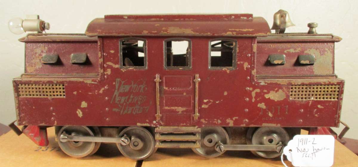 This one does have the hole in the end and with the wire handrails dates this to 1924. The earlier ones doesn't have the hole in the end. Collecting the 152 is harder than filling an inside straight. There are sooo many variations. I think I have 12 different. Mfg, corp, axle bushings, no axle bushings rivet coupler, slot coupler, 3 hole hoods, strap hoods, transition hoods, triangle brush plate, dog leg brush plate with caps, dog leg brush plate without caps, square brush plate, rivet brushes, crimp brushes, Nickel trim, brass trim, 154's stamped 152, 150's stamped 152, and on and on. And this doesn't even include the colors! Dark Green, Light Olive Green, Dark Olive Green,Light Grey, Dark Grey, Peacock, WHEW! I guess it all depends on how anal you are as to what you want in your collection.