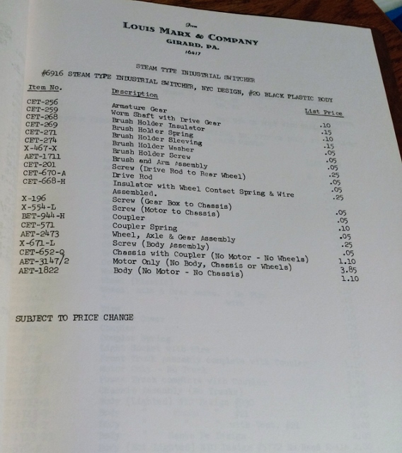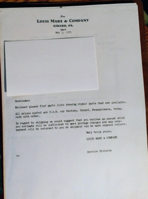 Jim... What do you know about this? I have about 50 sheets of original Marx parts Lists.