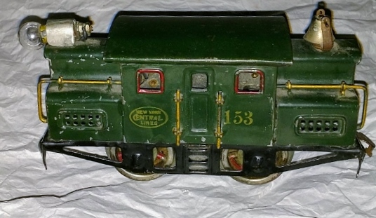 The Lionel 249E is in great shape, and the tender is cleaner. It's a 1939 era loco that came with low coupler 2651 series cars or maybe the 2717 litho cars in an uncataloged set. Easily worth $125.