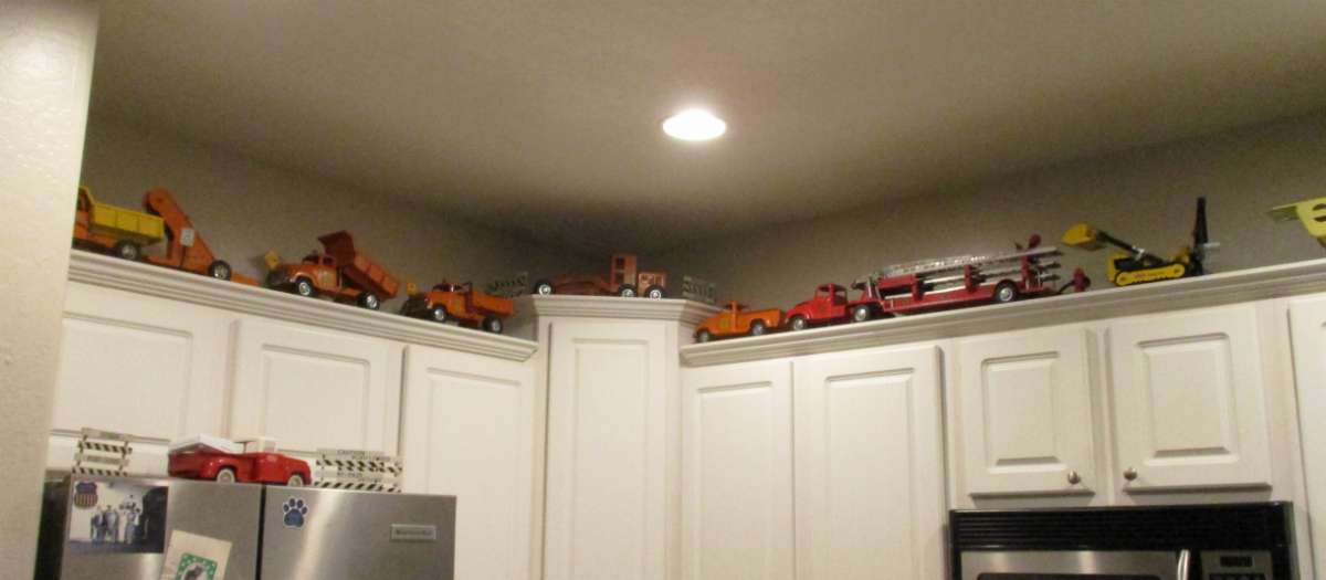 I have 1954-62 Tonka trucks above my kitchen cabinets: