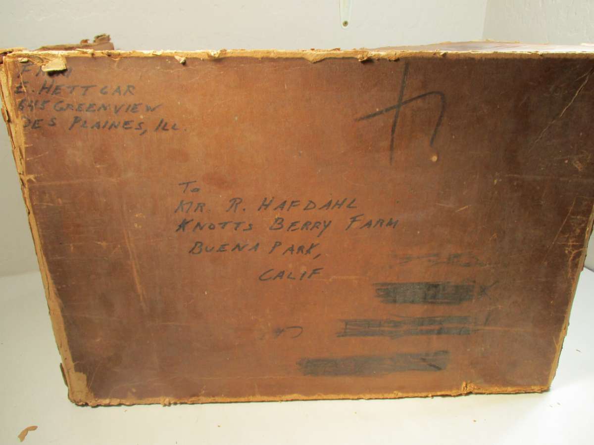 This set was shipped to Knotts Berry Farm in the 1950s as can be seen by the writing on the top of the box: