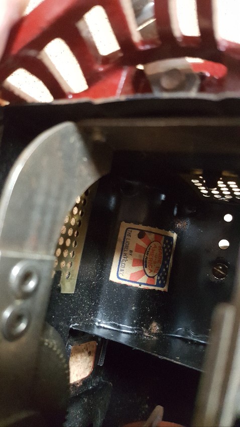 The earliest standard gauge locos aren't marked as Lionel anywhere. Sometime in 1912 or 13 they started using a reverse plate with Lionel Manufacturing on it. The 33 didn't get the reverse until later so it got a paper stamp inside.