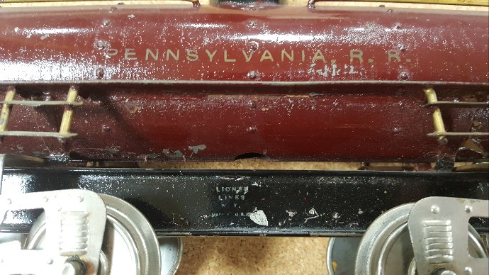 I was specifically interested to know if anyone had an example of the large Lionel Lines stamp on something other than the end of a 114 boxcar or underside a 601, 602