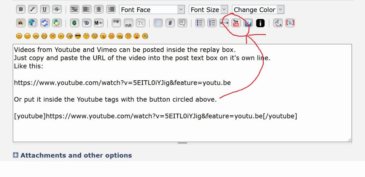 Videos from Youtube and Vimeo can be posted inside the reply box.
