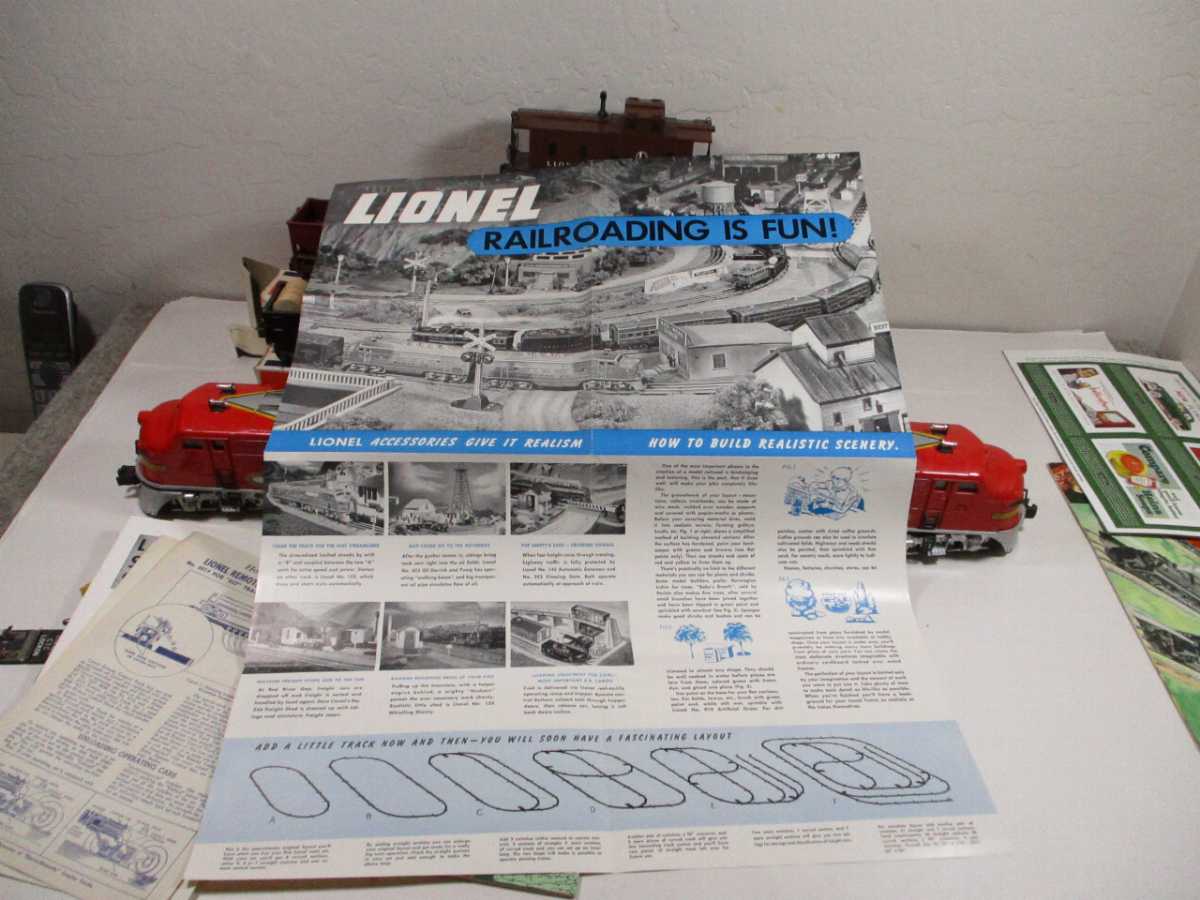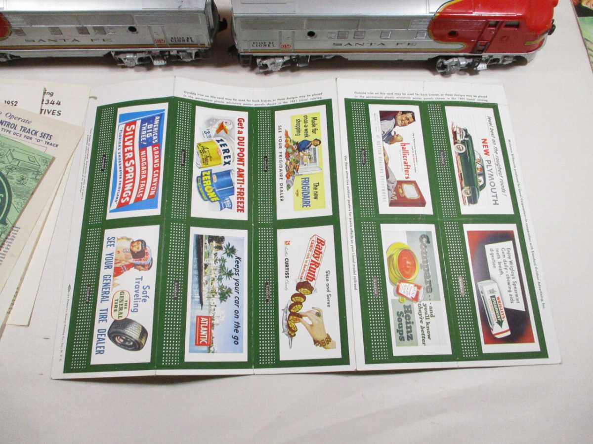 This is the top of the line set from 1951.  Set conatins a 2343 Santa Fe F3 AA pair and five cars.  This set was $70 new in 1951. The same set with a 6555 metal single dome tank car was offered in 1950 for $57.50, but the Korean war had put a premium on metal and caused rapid inflation.