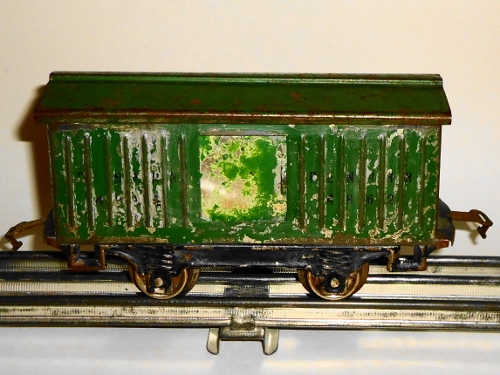 I'm sure everyone has a few pieces in their collection they would like to upgrade for one reason or another. Here's a rare 800 boxcar in dark green that was over-painted silver. As you can tell, I'm not too adept at removing over-paint. I tried brake fluid, alcohol, thinner, acetone, and what else I can't remember. Nonetheless, I have a dark green 800, not the best but it'll do until I can find a better one, if at all.