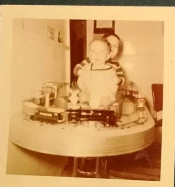The first B/W picture is me and my sis on the living room floor Christmas 1955 with the Marx Train and other toys. Note the RCA 45 record changer on top of the old TV.