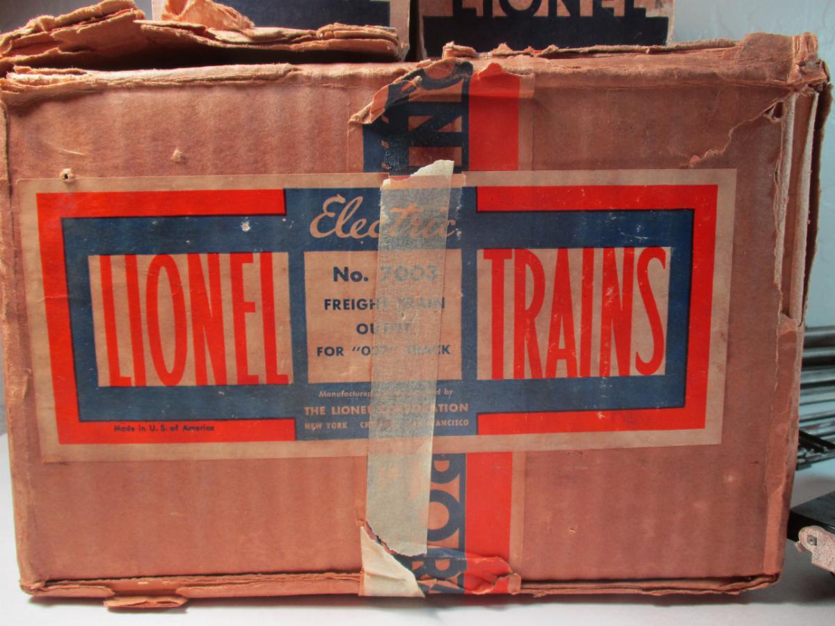 Here's another boxed set I bought today. Promotional outfit 7003 from 1940. A promotional outfit was an uncataloged set availible to any retailer. Mostly low end sets without uncouplers or whistles.