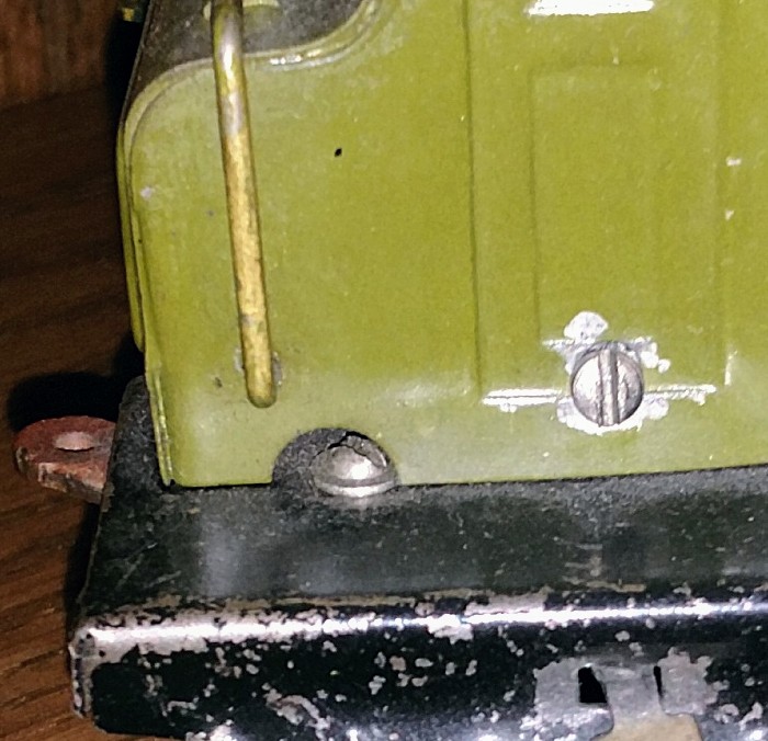 Even though he eludes to it in the description he neglects to show the end of the loco which would provide the definitive proof of it being a late 154 body. There should be a cutout in the end for the late body to clear the screw head holding the hand reverse to the frame. If it was the early 154 body it would have the flaps which would never fit on a 152 frame.